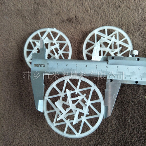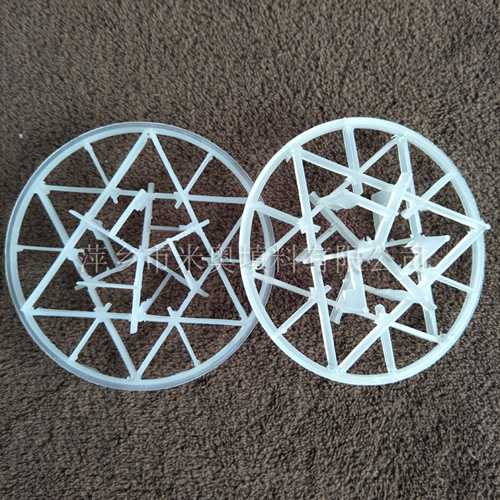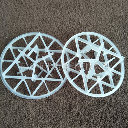 塑料雪花環具有空隙率大、耐熱、耐化學腐蝕,壓降和傳質單元高度低,泛點高、汽液接觸充分、比重小、傳質效率高等特點。在各種介質中的使用溫度為60-150攝氏度,廣泛用于石油、化工、氯堿、煤氣、環保等行業的填料塔中。