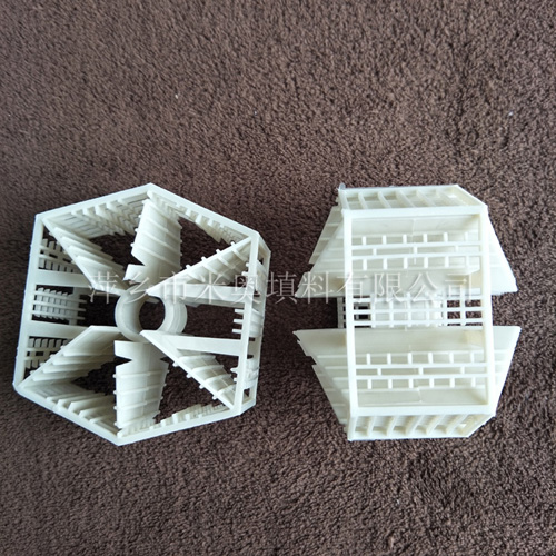 塑料六棱環填料其外形獨特的設計,可提供表面的排氣和洗滌液通道,促進液滴與連續形成填充介質之間的傳質和混合、分布分散及表面促進作用,同時小化充分平布和填料深度...