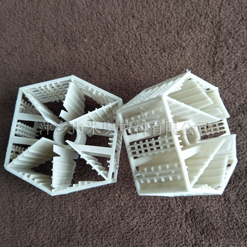 塑料六棱環填料其外形獨特的設計,可提供表面的排氣和洗滌液通道,促進液滴與連續形成填充介質之間的傳質和混合、分布分散及表面促進作用,同時小化充分平布和填料深度。產品有非常高的凈化效率,已被證明是具有高液體負荷應用很好的塔填料。PPH棱形環填料這種優良的結構特點采用低得多的鮑爾環直徑的高度比有利于在較低的壓力降和較高的能力,結果導向的演變;產品優良的機械強強度,耐化學腐蝕性能好。