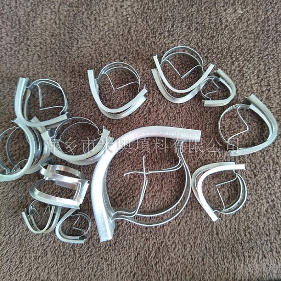 金屬矩鞍環又叫英特洛克斯環,形狀介于環形與鞍形之間,因而兼有兩者之優點。結構上金屬矩鞍環填料在鞍形基礎上增加了環形筋,避免了重迭,保證了一定的強度與剛性,沖出了幾個小爪,增加了氣液攪動,強化了傳質,從而產生了獨特的性能。采用金屬矩鞍環可以增加產率,降低能耗或成本,提高分離效率。