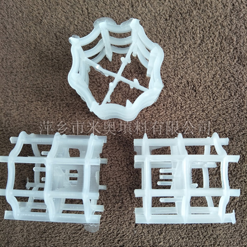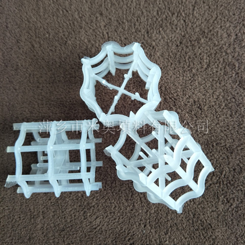 塑料八四內弧環也叫八柱環,該填料有合理的幾何對稱性,構造均勻性好及高的空隙率,八弧圈與四弧圈順軸向交替安排,各弧段沿徑向環內折進,從而使填料表面連續而不斷開,且在空間均勻分布,與鮑爾環相比,能量可提高15-30%,壓降減小20-30%,一般由金屬,塑料做成。